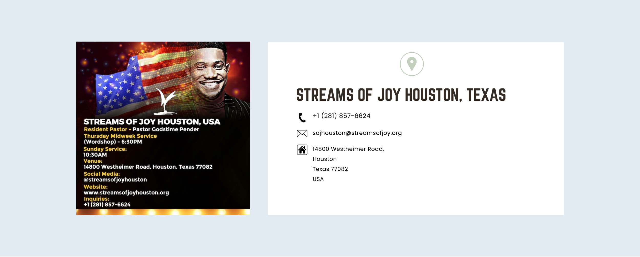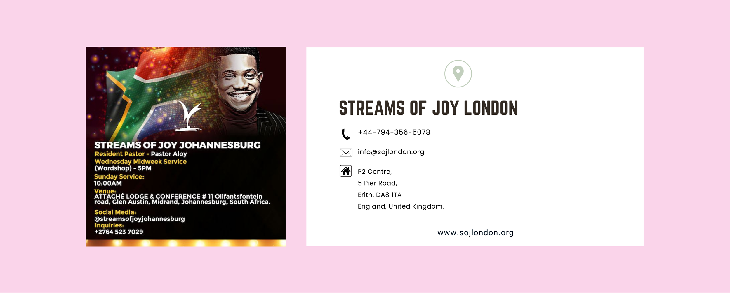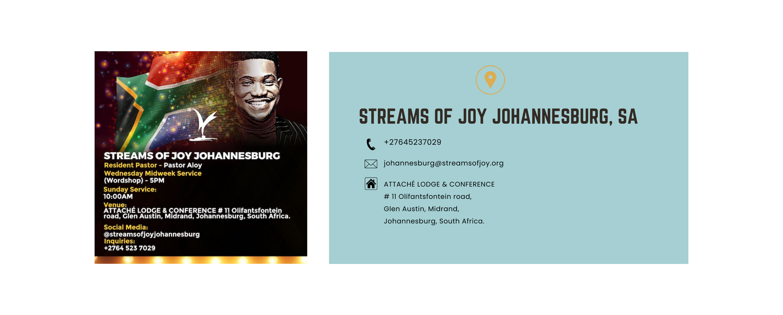 Streams of Joy’s aim is to spread the gospel to every part of the globe. The Holy Spirit's power is not limited to a certain region, and its impact knows no bounds. Join us in worship at any of our expressions near you, and even if we are not close enough, know that you will be able to worship with us in person soon, as there are plans to plant new churches across the world.