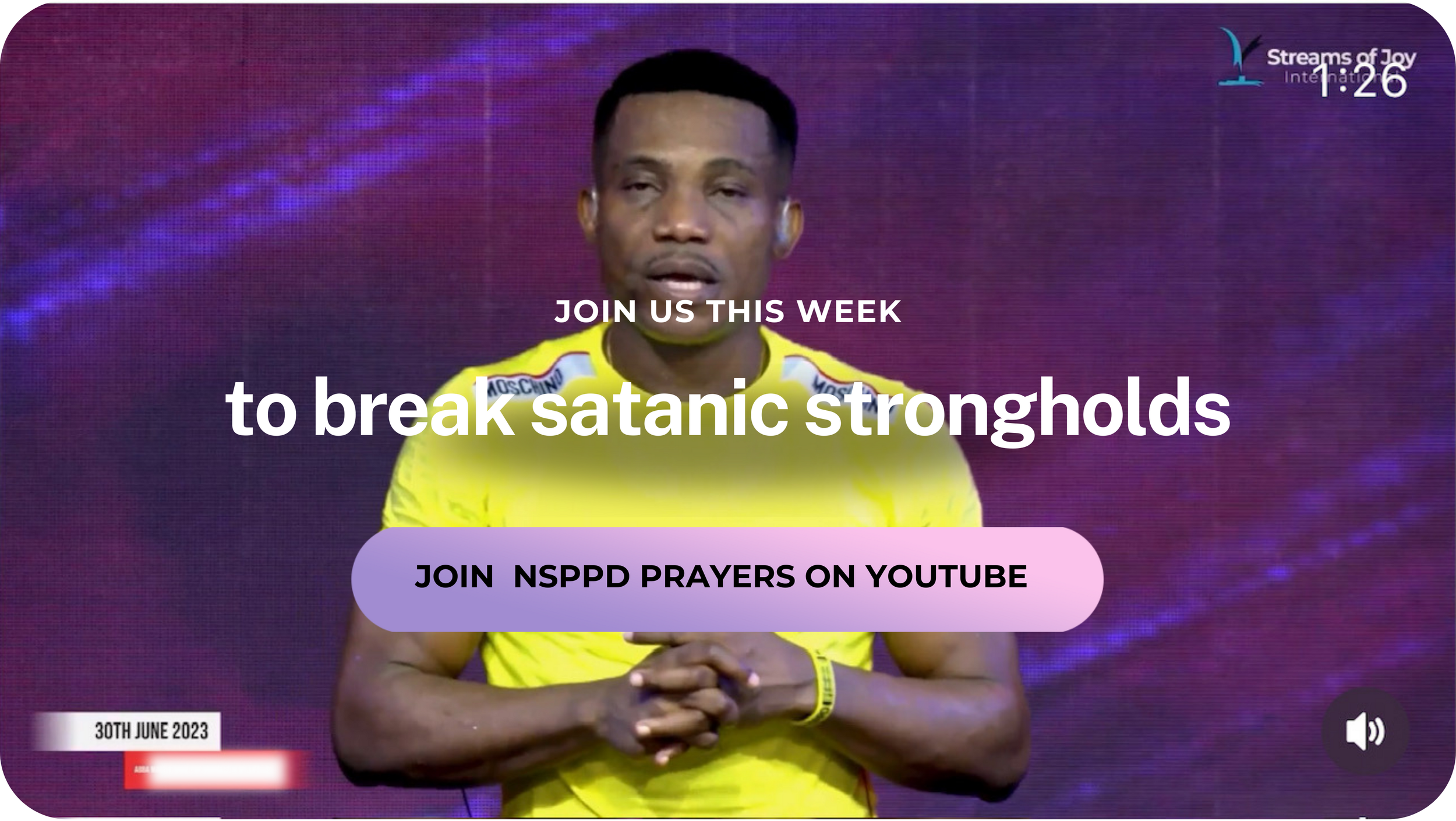 Established in 2020 by our General Overseer Pastor Jerry Eze, NSPPD is a prayer tribe that connects all members every morning, to the Fire Altar. At Streams of Joy we believe the best way to start the day is in the presence of God. Join us and thousands around the world on Monday to Friday, every week, at 7am WAT on the Streams of Joy International social network channels to seek the face of our God and receive answers to all life's issues.