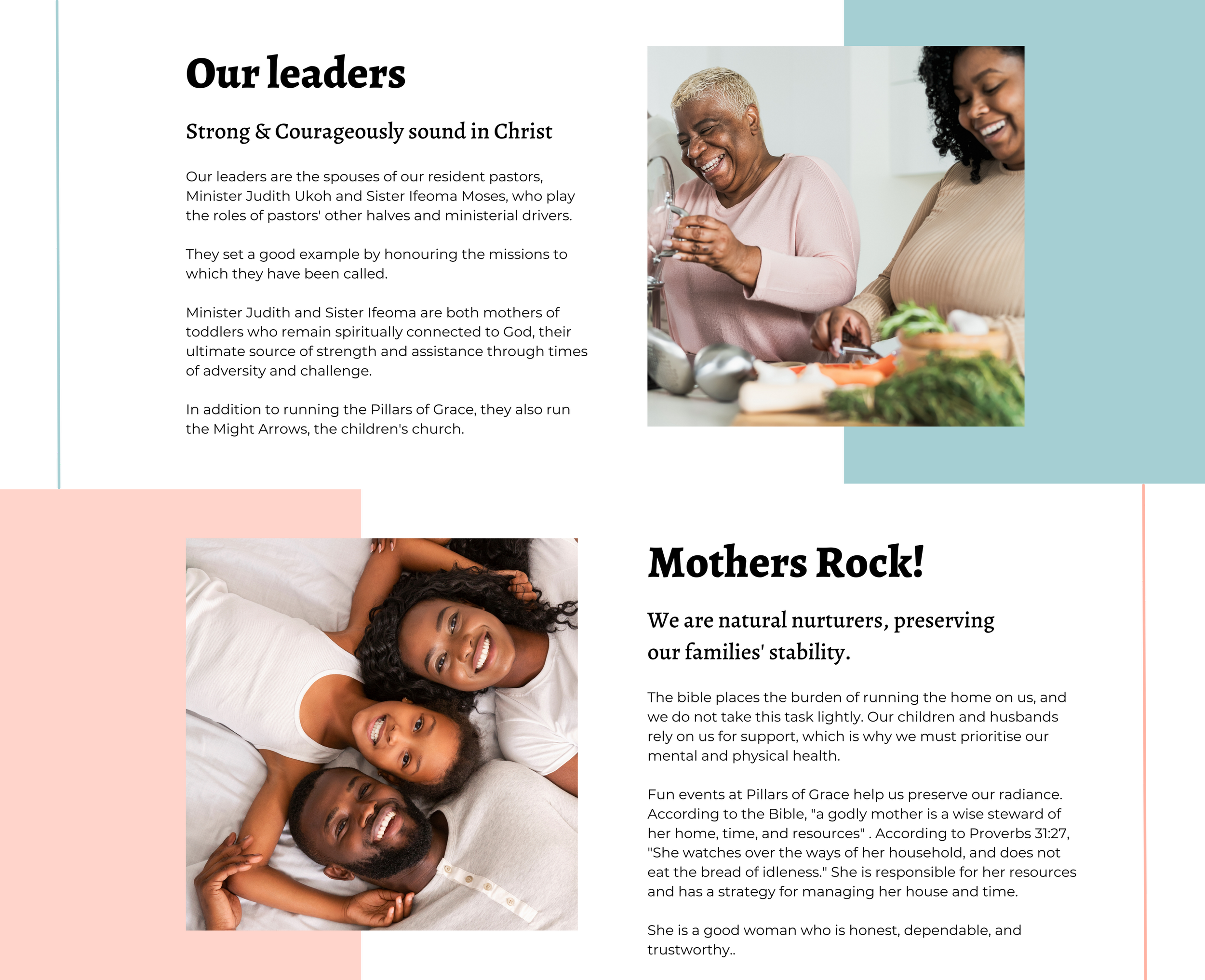 Our Vision as Pillars of Grace is to see the women of the church grow mightily in grace and wisdom of God. Women of God who are spiritual, capable, intelligent and virtuous. We come together to equip ourselves with spiritual, mental and physical fitness to fulfil our individual God given Purpose. We build friendship, love and unity among the women. We come together to learn and grow in business, career, academics and Ministry.